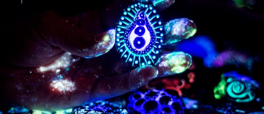 Fabian works with a vast array of custom-developed materials, many of which are sourced from specialized chemical laboratories. Her use of glow-in-the-dark pigments, fluorescent inks, UV-reactive paints, and phosphorescent minerals allows her to manipulate how surfaces absorb and emit light. These substances are not commercially standard; in many cases, Fabian must modify or combine compounds to achieve the unique glow, longevity, and color gradient she envisions. This makes each project an exercise in material alchemy—a term she often uses to describe her artistic process.