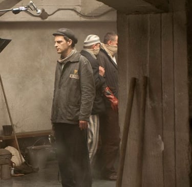 Visual focus and narrative intensity set this film apart. While the wider camp throngs blur into a visceral gray, every glance Saul makes, every decision he makes under unbearable stress conveys the narrowing of consciousness. The world becomes a corridor of horror that he navigates with purpose. The cinematography from Mátyás Erdély uses a 40mm lens and Academy aspect ratio to flatten the world—a portrait-like, claustrophobic space where the camera becomes an extension of Saul’s mind. Sound designer Tamás Zányi adds layers of effect: disembodied laments, dripping water, muffled commands, and dragging bodies build a sensory pressure chamber. Dialogue is scarce; the film trusts emotion and movement to deliver meaning. As Saul’s search for a rabbi to recite Kaddish intensifies, the film becomes a spiritual odyssey under the unimaginable weight of genocide—an act of devotion that feels both radical and desperately necessary.